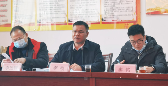 工作队队长李强(左二)作2021年钟山县驻村工作队管理工作情况汇报