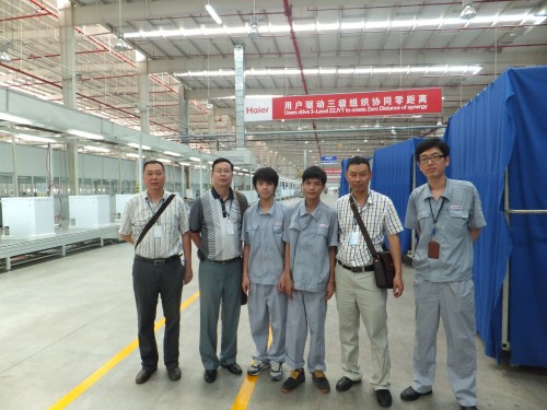 6月17日下午,黄副校长一行来到位于佛山三水区的海尔创新产业园区,在佛山海尔电冰柜有限公司负责人的陪同下参观了公司的生产车间,与在该公司工作的同学深切交谈并合影。