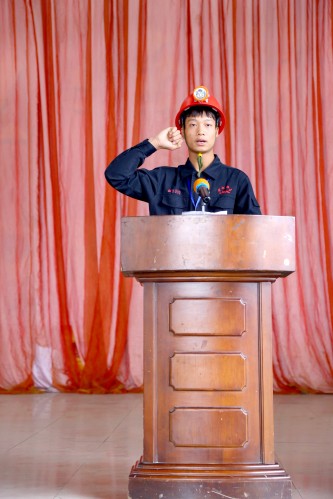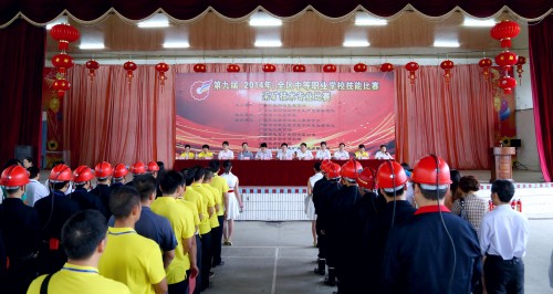 自治区安监局、自治区教育厅领导及学校校长分别在开幕式上致辞,随后,参赛选手代表及裁判代表先后上台宣誓。