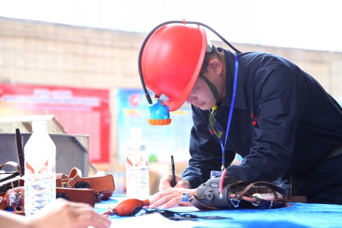 参赛选手正在进行采掘机电模拟工作比赛