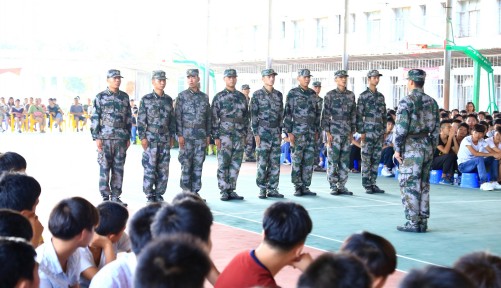 本次军训团团长谢晓丹在动员大会上讲话,希望同学们在这次军训中坚持、坚强,体现现代学生应有的精神风貌和刻苦耐劳的品质。随后,学生代表、教官代表分别宣誓。教官们还进行了精彩的队列表演。