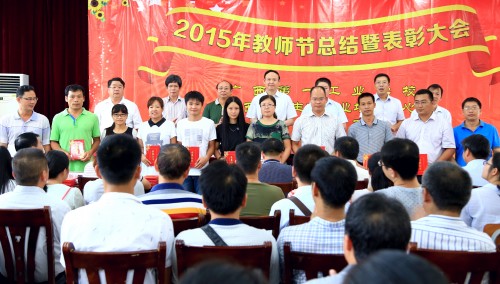 金风送爽,丹桂飘香。9月10日下午,我校在1号多媒体教室隆重召开2015年教师节表彰大会,对过去一年来学校涌现出来的优秀教师、优秀教育工作者、优秀班主任及先进科室进行了表彰。自治区安监局副局长陈家良、办公室副主任鄢志峰、人事教育处副处长周仲云及学校领导班子成员出席会议,并为受表彰人员颁发获奖证书。表彰大会由党委书记张海林主持,全体教职工参加会议。