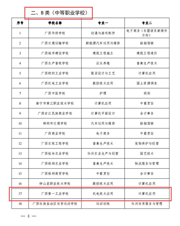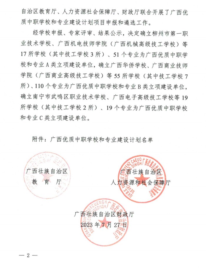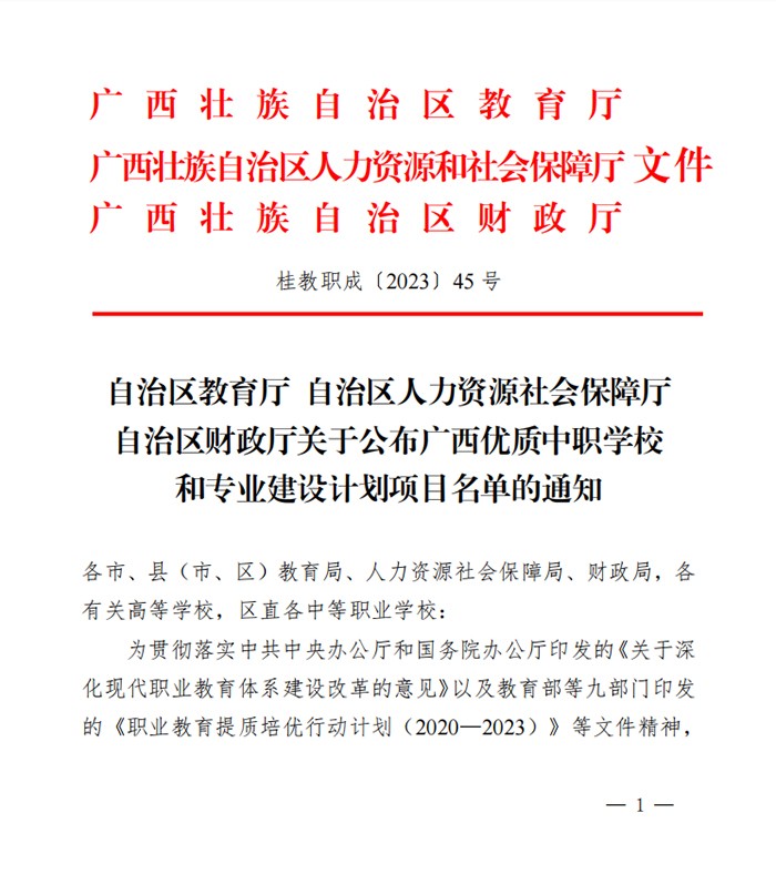 近日,自治区教育厅、自治区人社厅、自治区财政厅联合发文公布广西优质中职学校和专业建设计划项目名单,新利·体育(中国)官方网站被确立为广西优质中职学校和专业B类立项建设单位,机电技术应用、计算机应用两个专业入选专业B类建设计划,为十四五良好开局、实现新时代职业教育高质量发展开启了新征程。