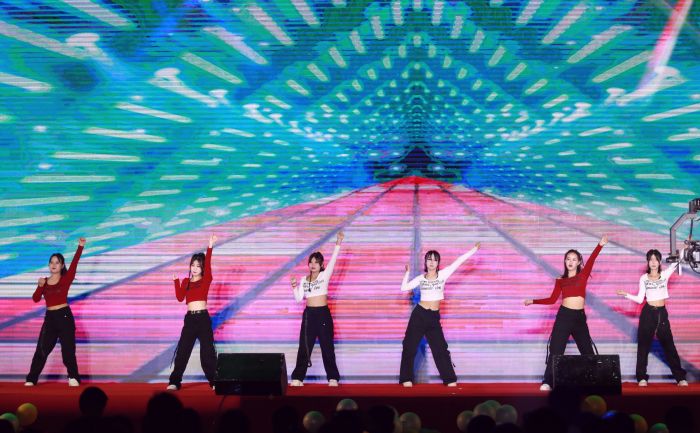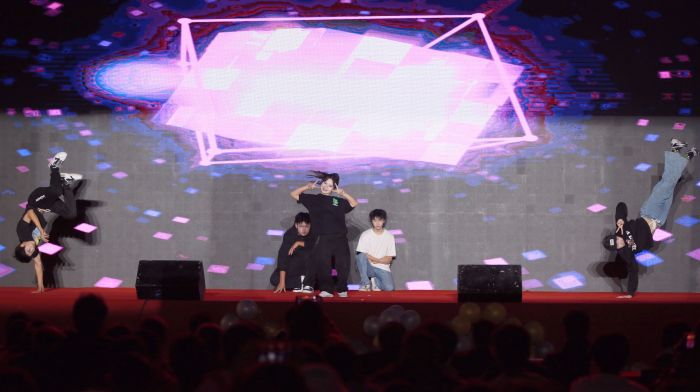 现场洋溢着和谐热烈的氛围,观众欢呼不断,掌声连连,展现了学校师生昂扬进取的精神风貌。