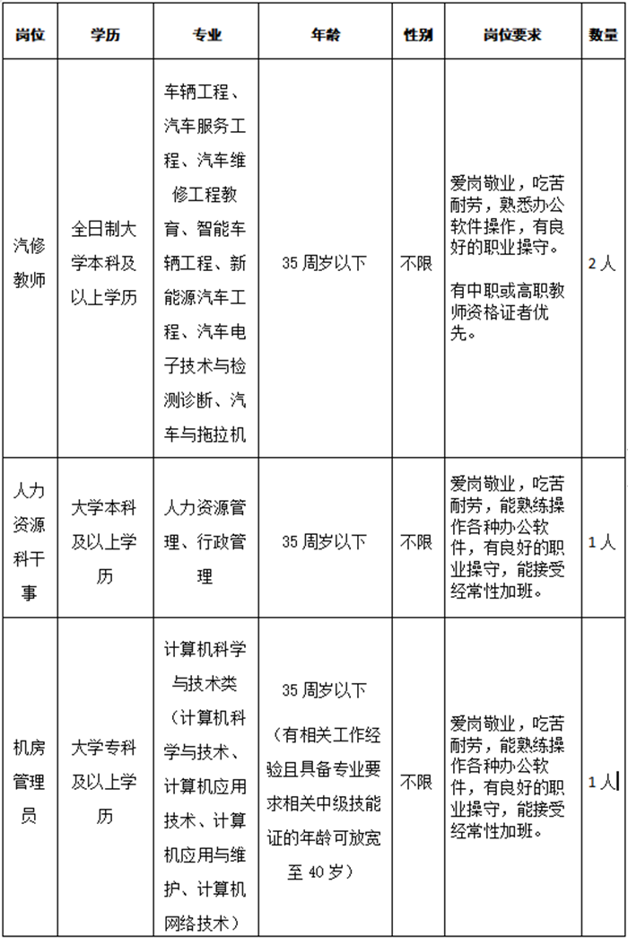 (二)热爱中等职业教育事业,具有良好的职业道德,服从组织安排,具有团结协作和奉献精神。